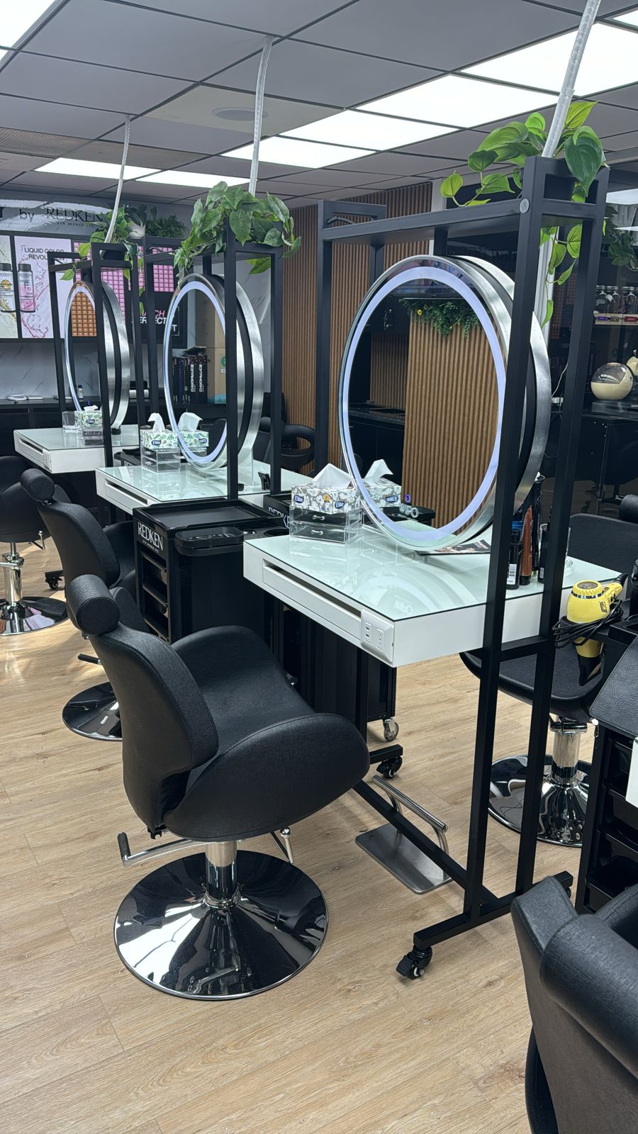 Con un diseño modular y personalizable, esta estación de belleza de 2 puestos de trabajo ofrece todo lo que necesitas para un espacio cómodo, moderno y funcional: